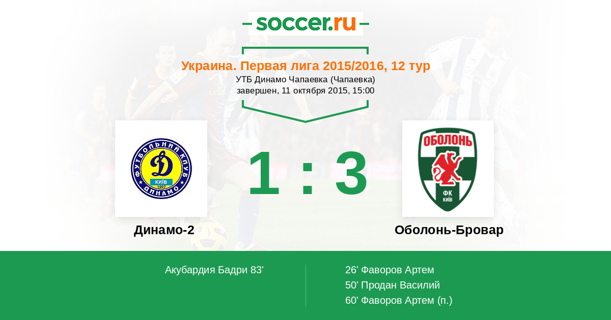 Протокол матча Динамо-2 против Оболонь-Бровар