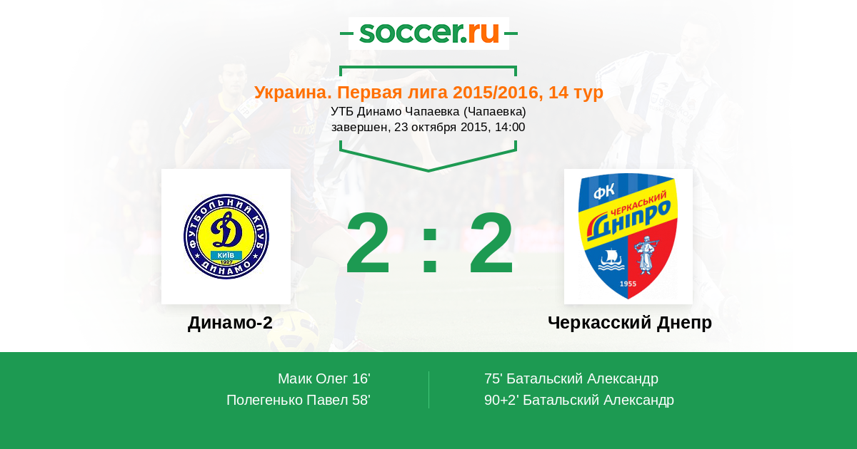 Протокол матча Динамо-2 против Черкасский Днепр