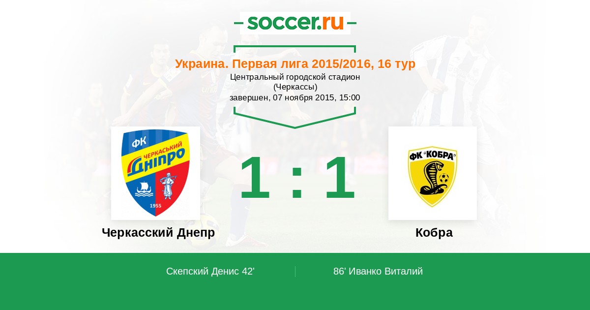 Протокол матча Черкасский Днепр против Гелиос
