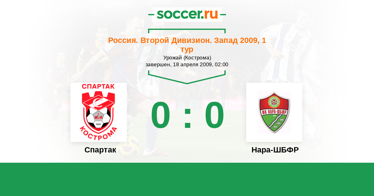 Россия. Вторая лига. Группа 2 02.08.2009 Нара-ШБФР Логотип футбольный клуб Нара-ШБФР (Наро-Фоминск) 0:2 Логотип футбольный клуб Спартак Кострома Спартак Кострома