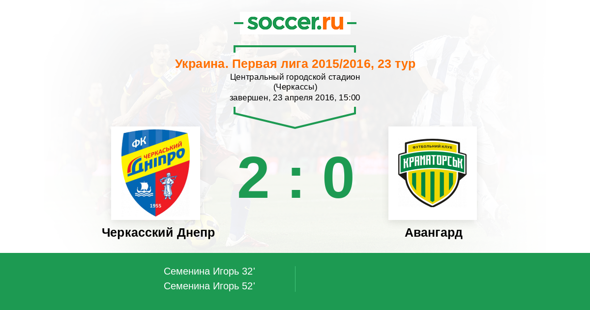 Протокол матча Черкасский Днепр против Авангард