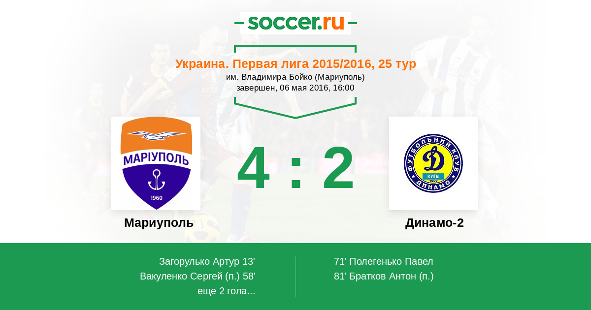 Протокол матча Ильичевец против Динамо-2