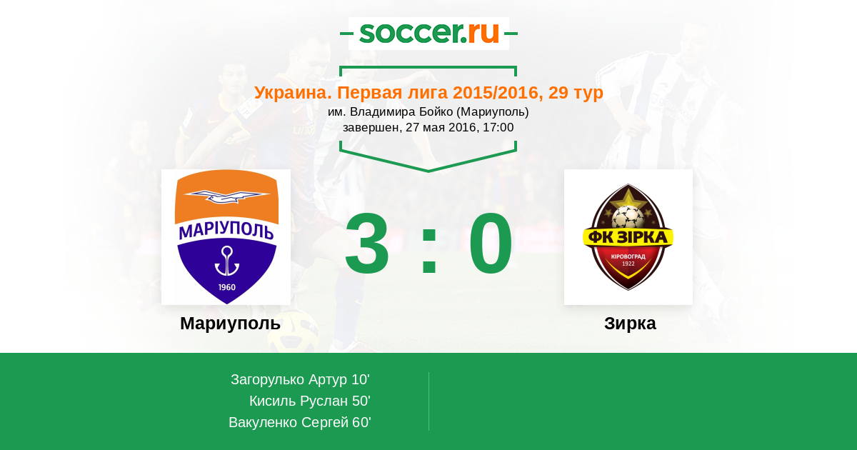 Протокол матча Ильичевец против Зирка