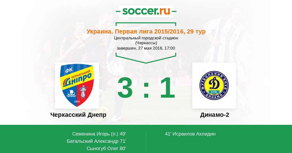 Протокол матча Черкасский Днепр против Динамо-2