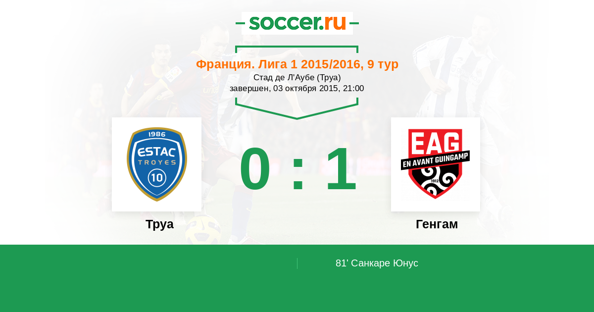 Протокол матча Труа против Генгам