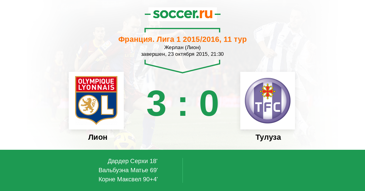 Протокол матча Лион против Тулуза