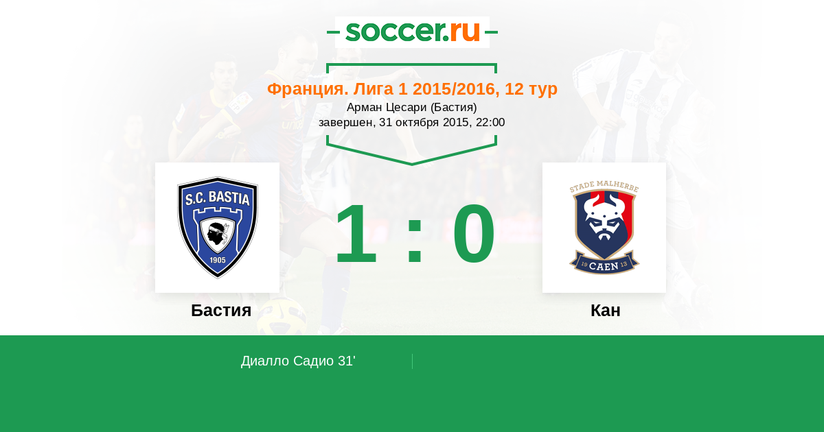 Протокол матча Бастия против Кан