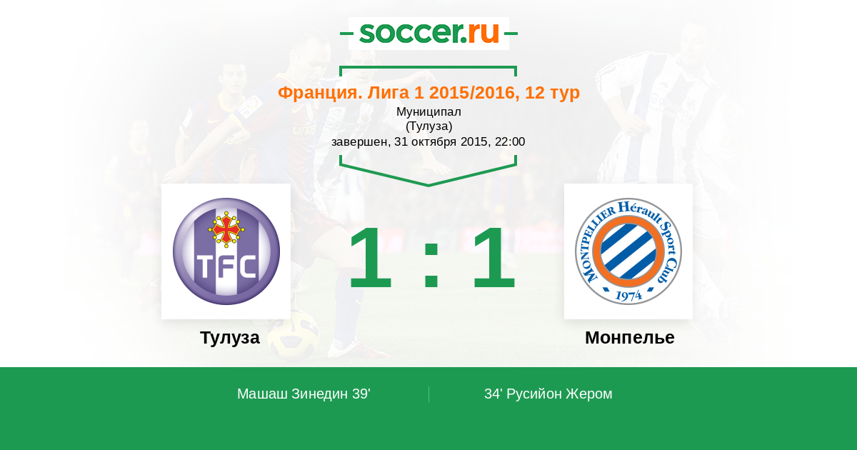 Протокол матча Тулуза против Монпелье