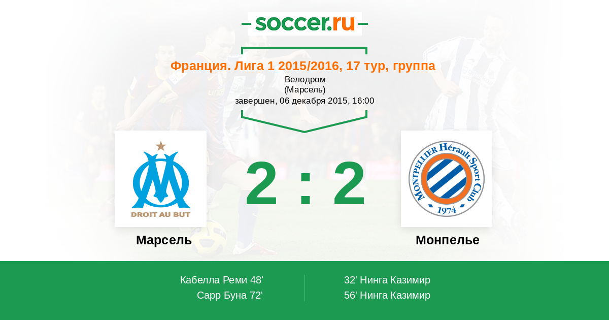 Протокол матча Марсель против Монпелье