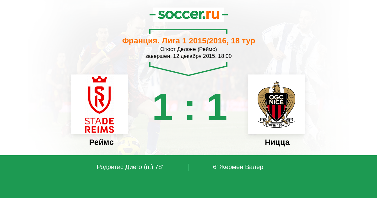 Протокол матча Реймс против Ницца