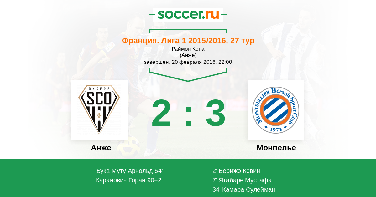 Протокол матча Анже против Монпелье
