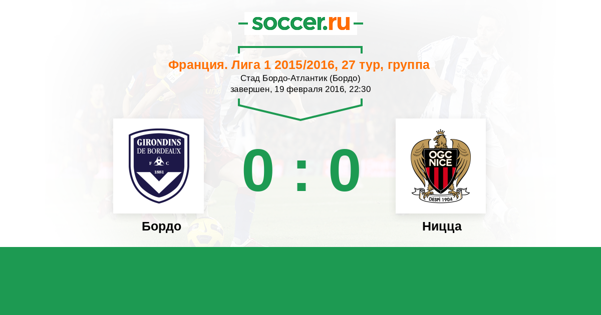 Протокол матча Бордо против Ницца