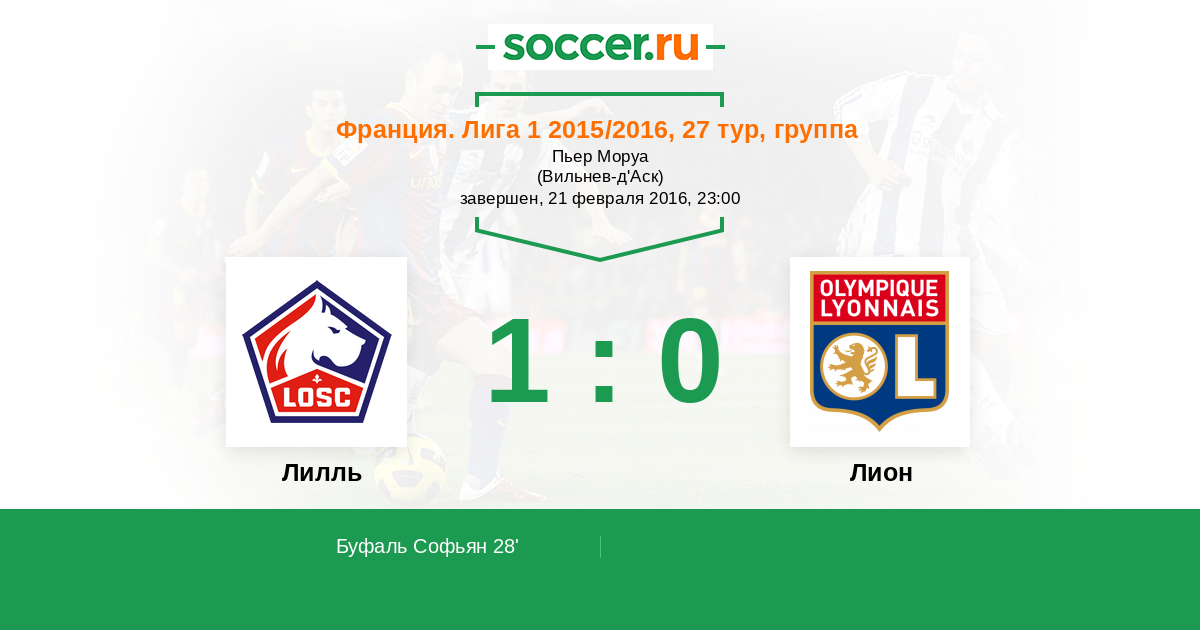 Протокол матча Лилль против Лион