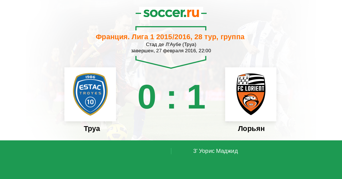 Протокол матча Труа против Лорьян