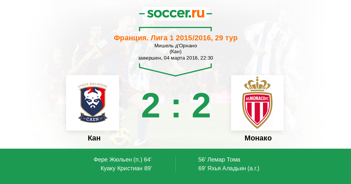 Протокол матча Кан против Монако