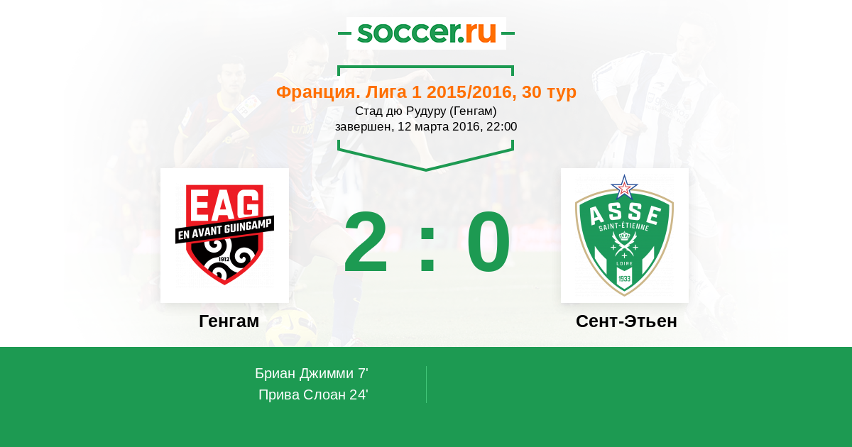 Протокол матча Генгам против Сент-Этьен