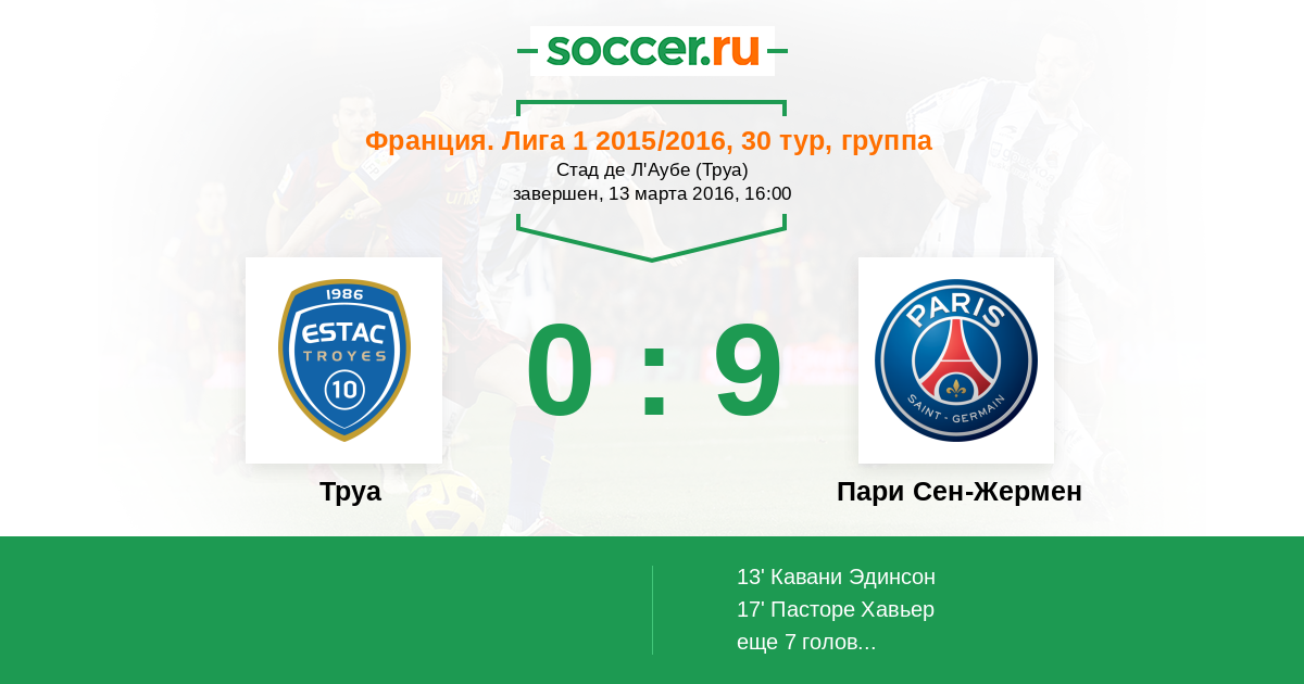 Протокол матча Труа против Пари Сен-Жермен