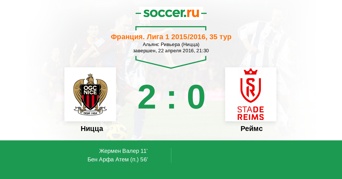 11' (1:0) Жермен Валер (28) (Бен Арфа Атем (9))