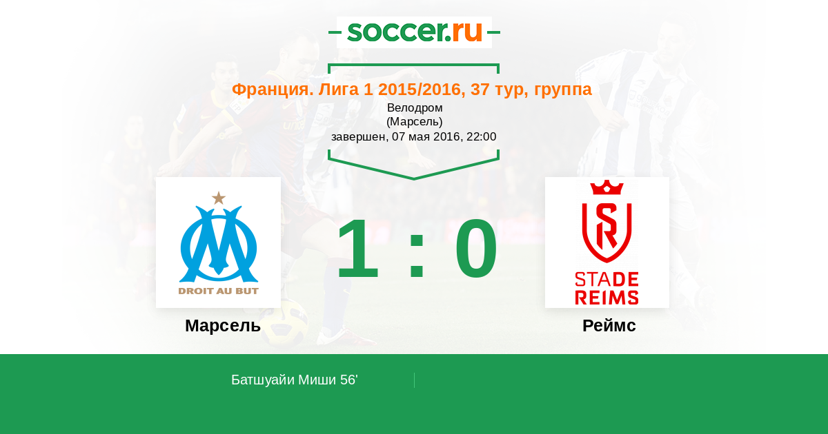 Протокол матча Марсель против Реймс
