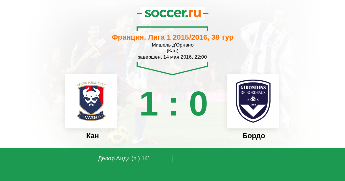 Протокол матча Кан против Бордо