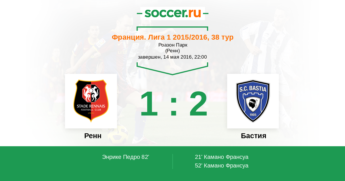 Протокол матча Ренн против Бастия