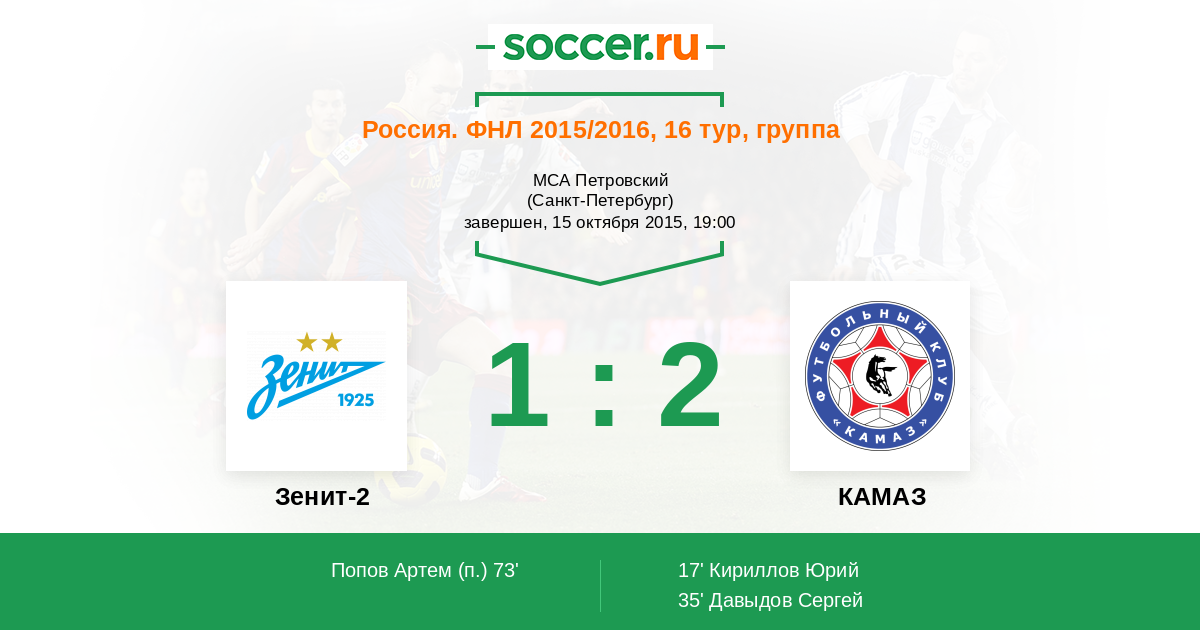Протокол матча Зенит-2 против КАМАЗ