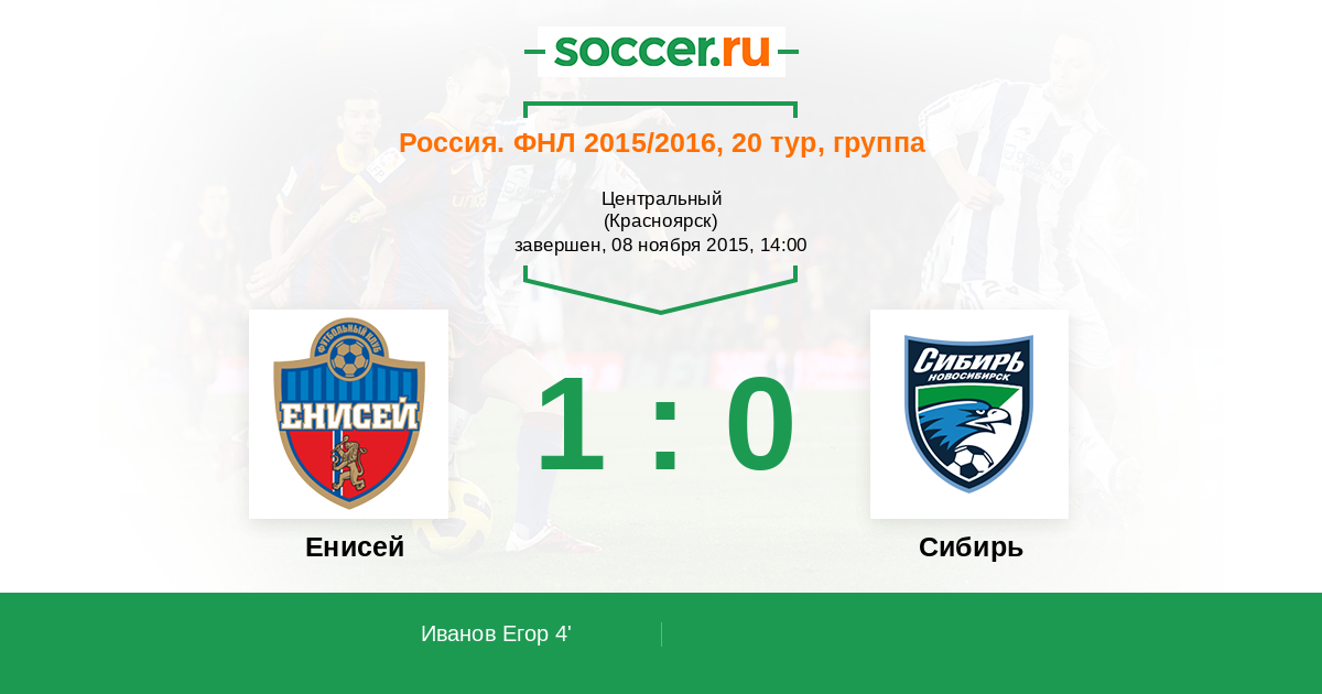 Протокол матча Енисей против Сибирь