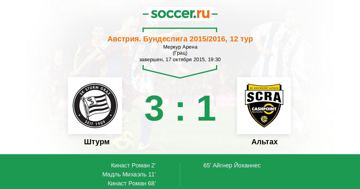 65' (2:1) Айгнер Йоханнес (25) (Шрайнер Эмануэль (16))