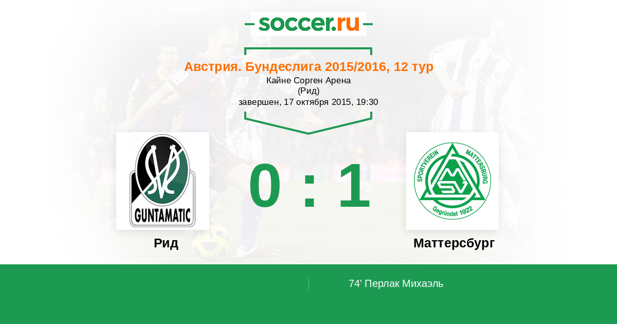 74' (0:1) Перлак Михаэль (20) (Рохер Торстен (27))