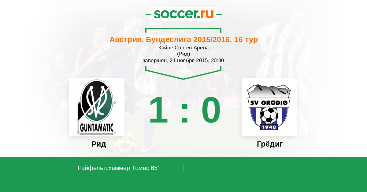 65' (1:0) Райфельтсхаммер Томас (28) (Эльзнег Дитер (20))