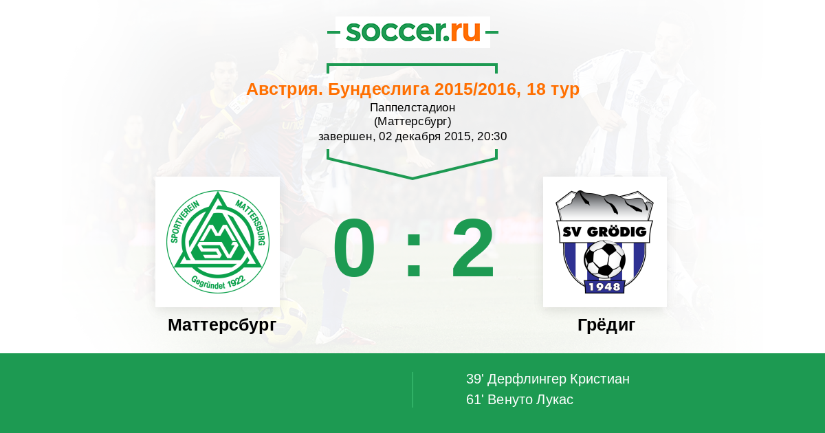 Протокол матча Маттерсбург против Грёдиг