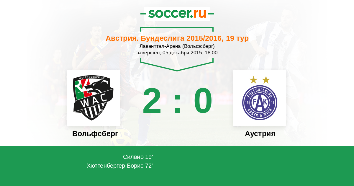 Протокол матча Вольфсберг против Аустрия
