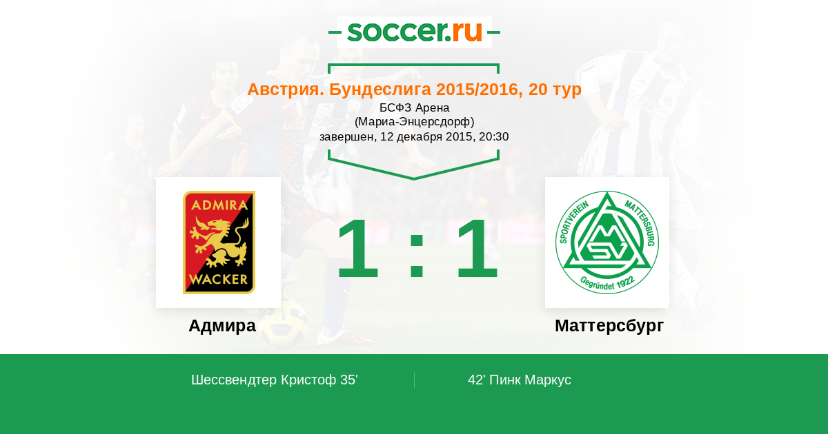 42' (1:1) Пинк Маркус (32) (Хёллер Алоис (8))