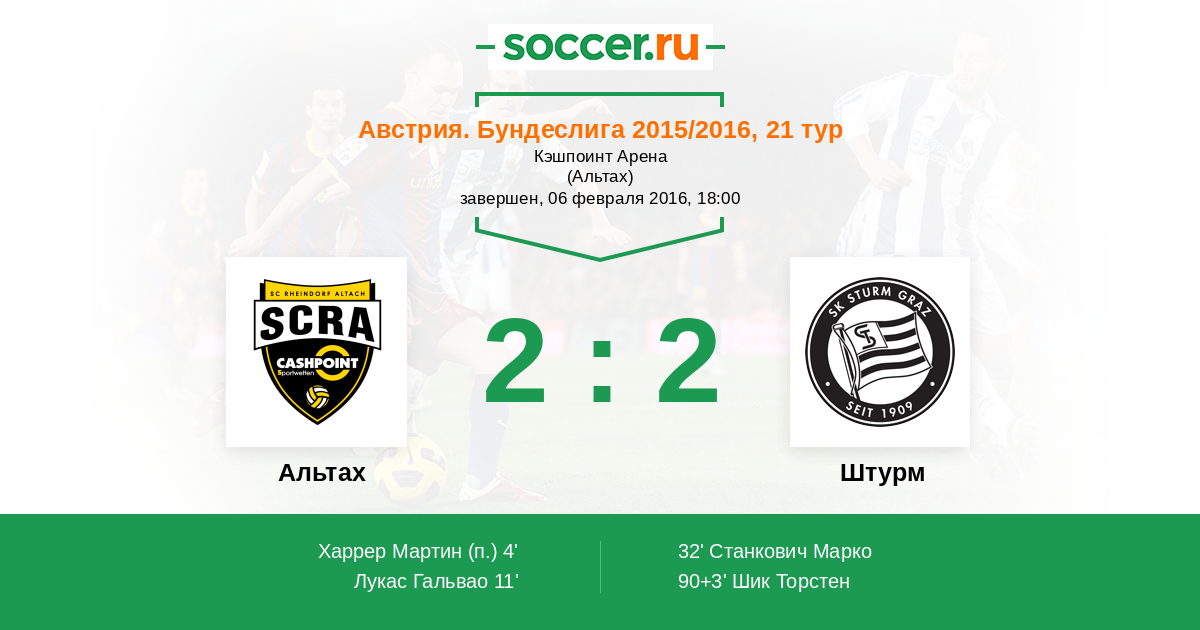 Протокол матча Альтах против Штурм