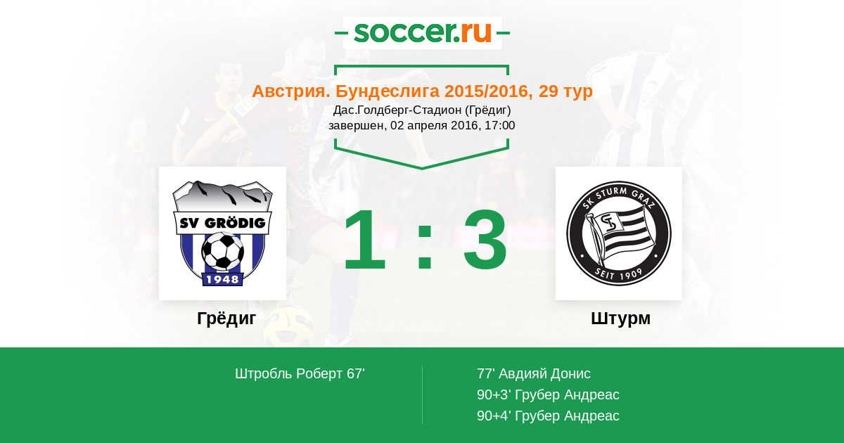 Гол90+3' (1:2) Грубер Андреас (22) (Авдияй Донис (77))