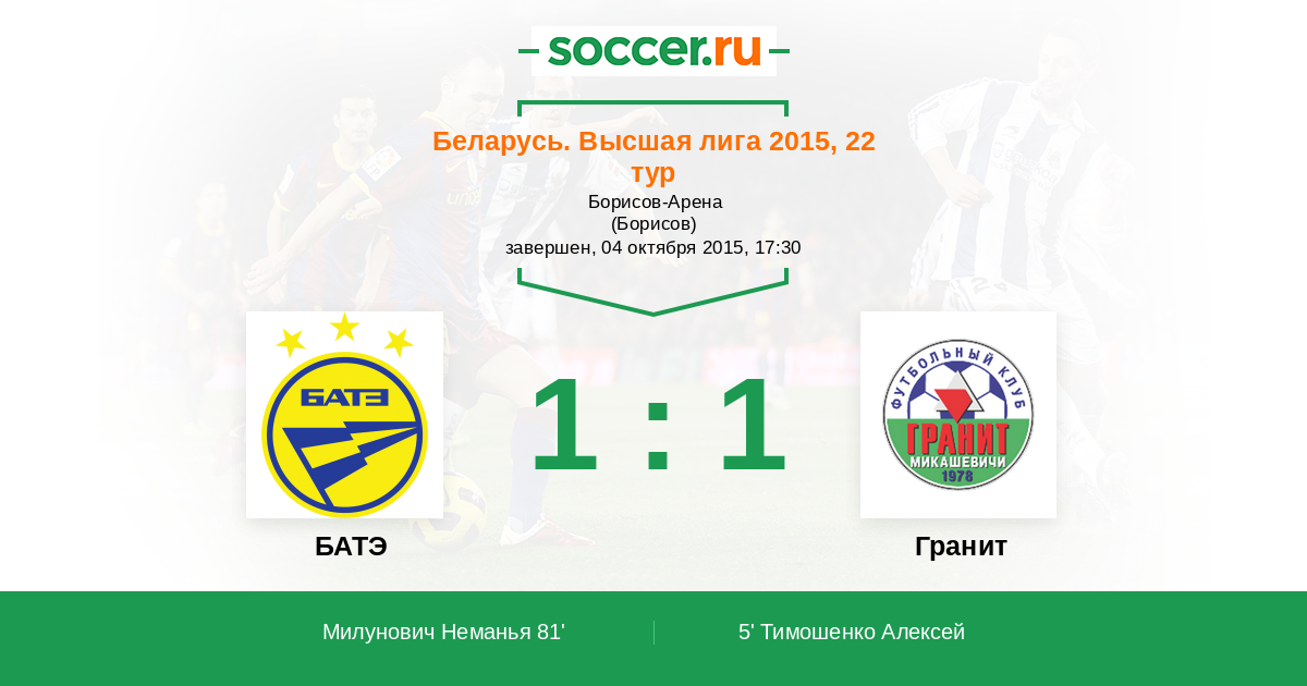 Протокол матча БАТЭ против Гранит