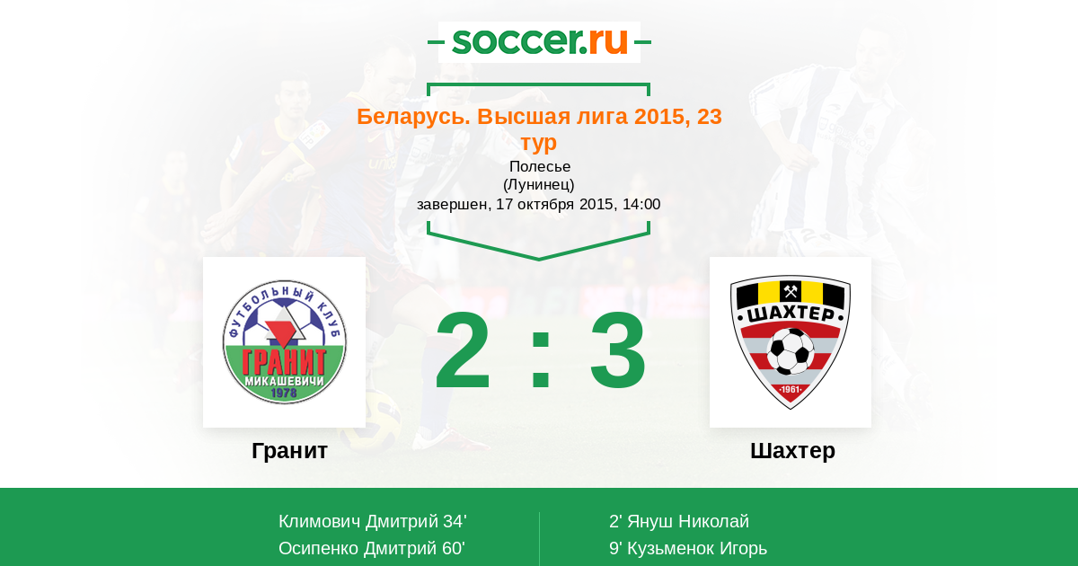 Протокол матча Гранит против Шахтер