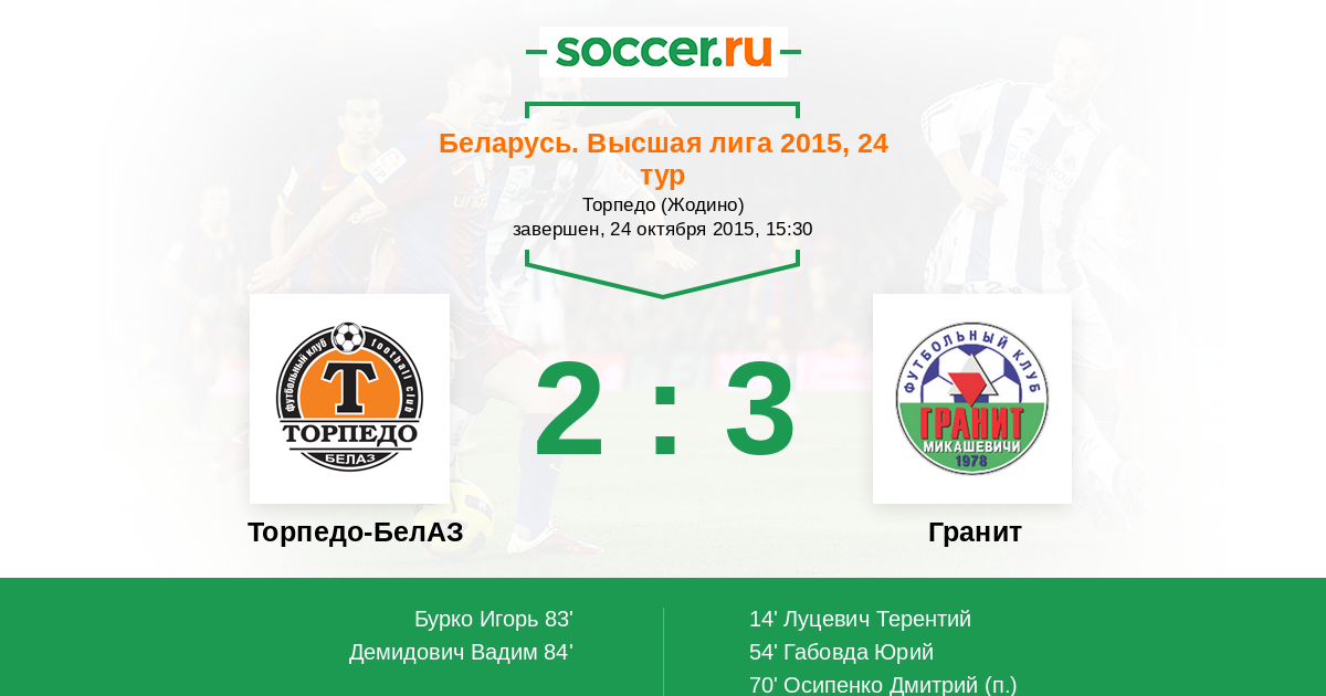 Протокол матча Торпедо-БелАЗ против Гранит