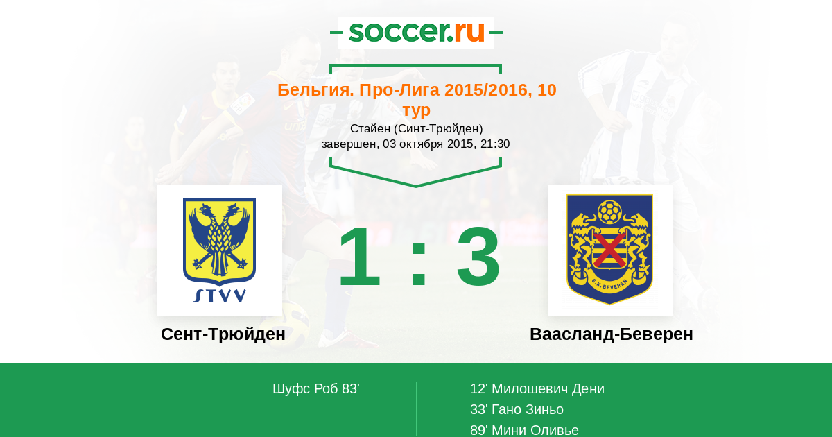Протокол матча Сент-Трюйден против Ваасланд-Беверен