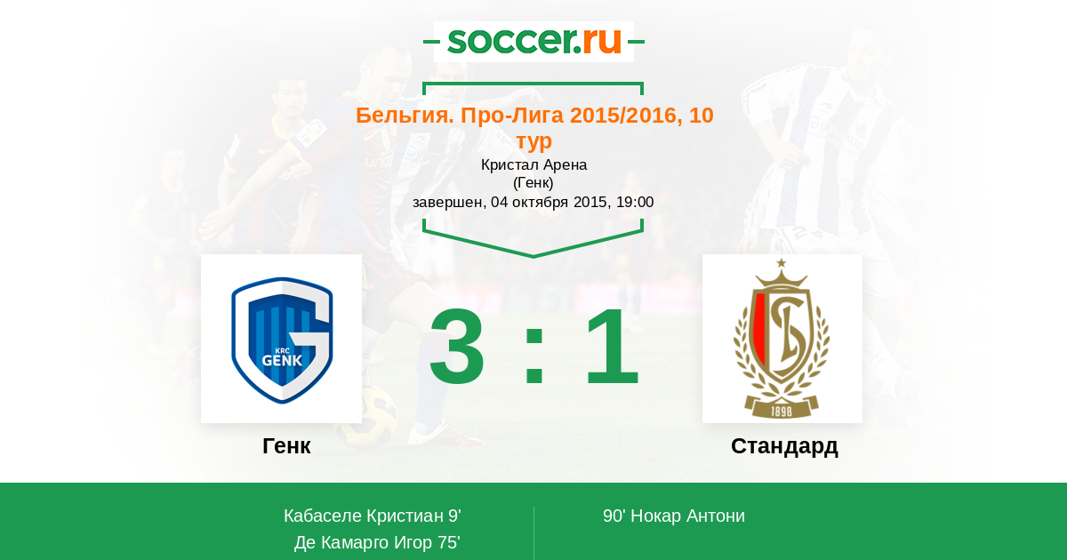 Протокол матча Генк против Стандард