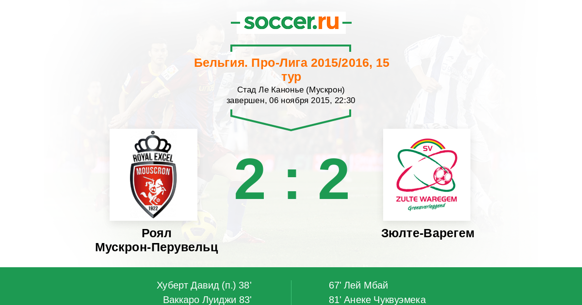 Протокол матча Роял Мускрон-Перувельц против Зюлте-Варегем