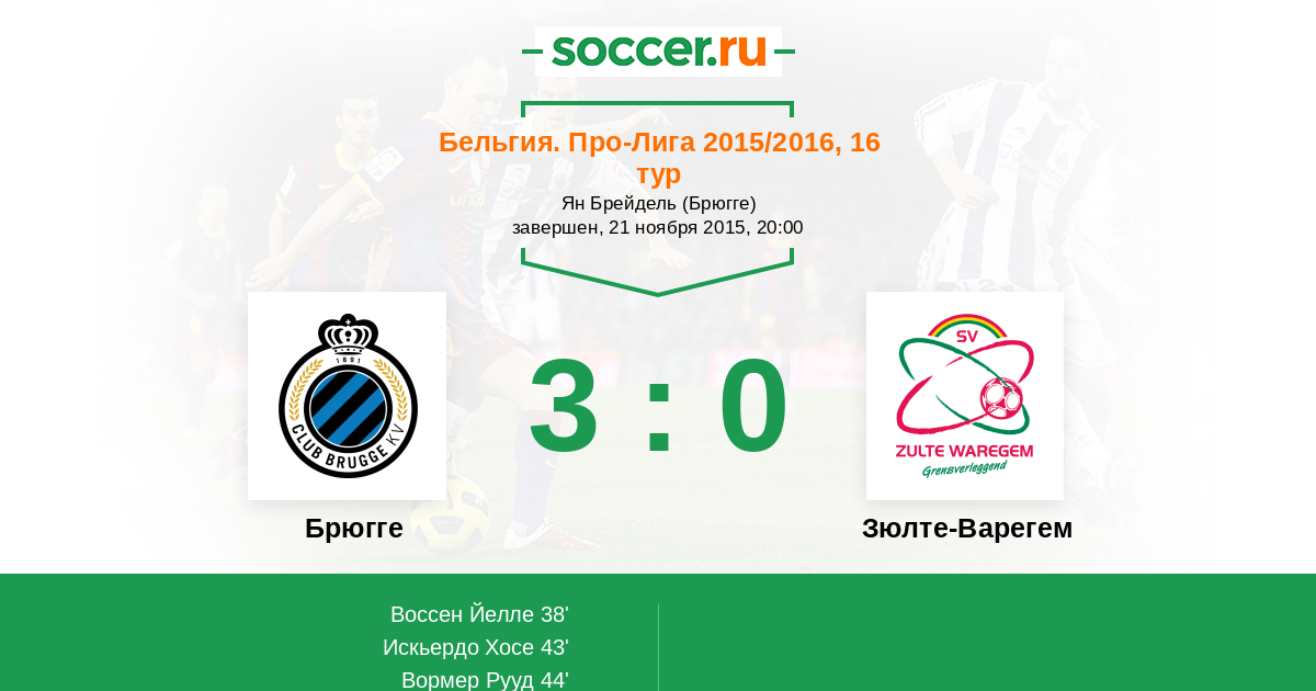 Протокол матча Брюгге против Зюлте-Варегем