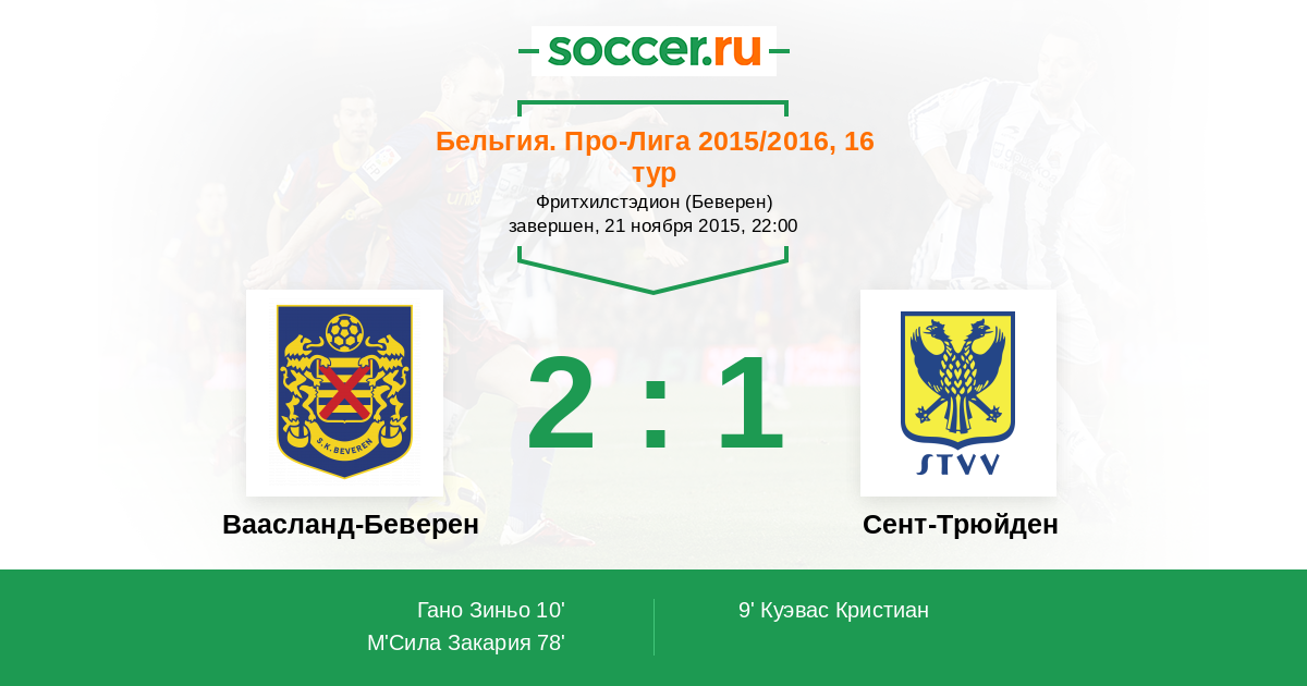 Протокол матча Ваасланд-Беверен против Сент-Трюйден