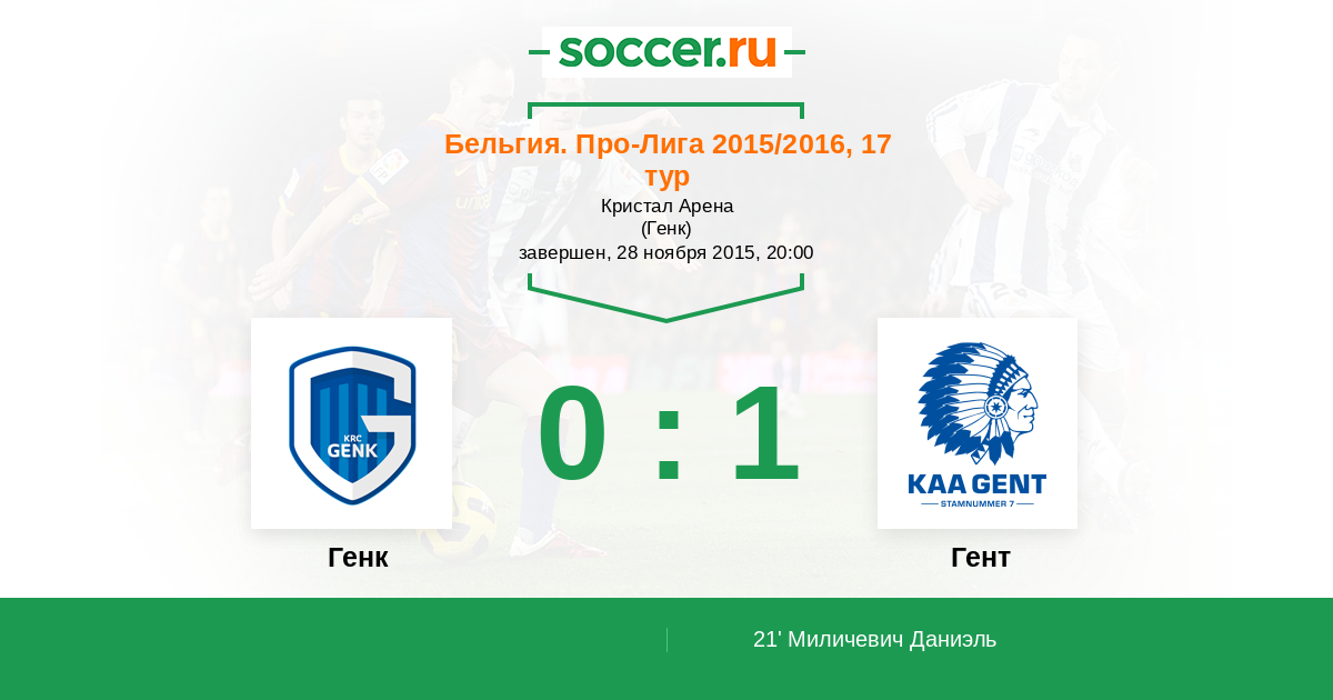 Протокол матча Генк против Гент