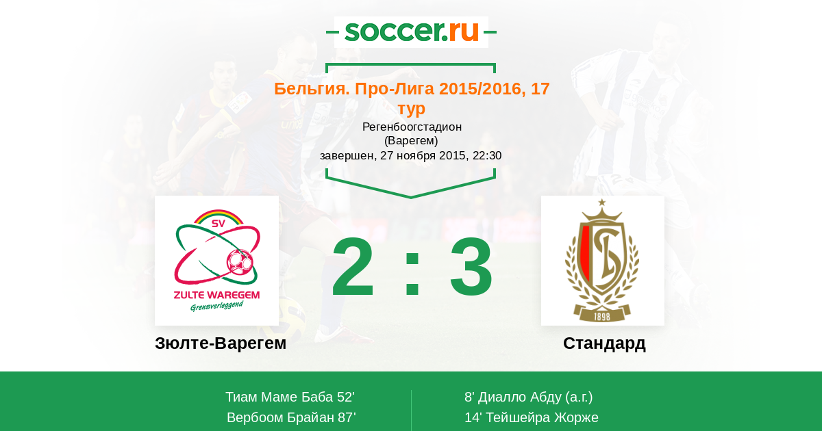 Протокол матча Зюлте-Варегем против Стандард