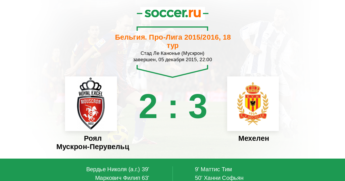 Протокол матча Роял Мускрон-Перувельц против Мехелен