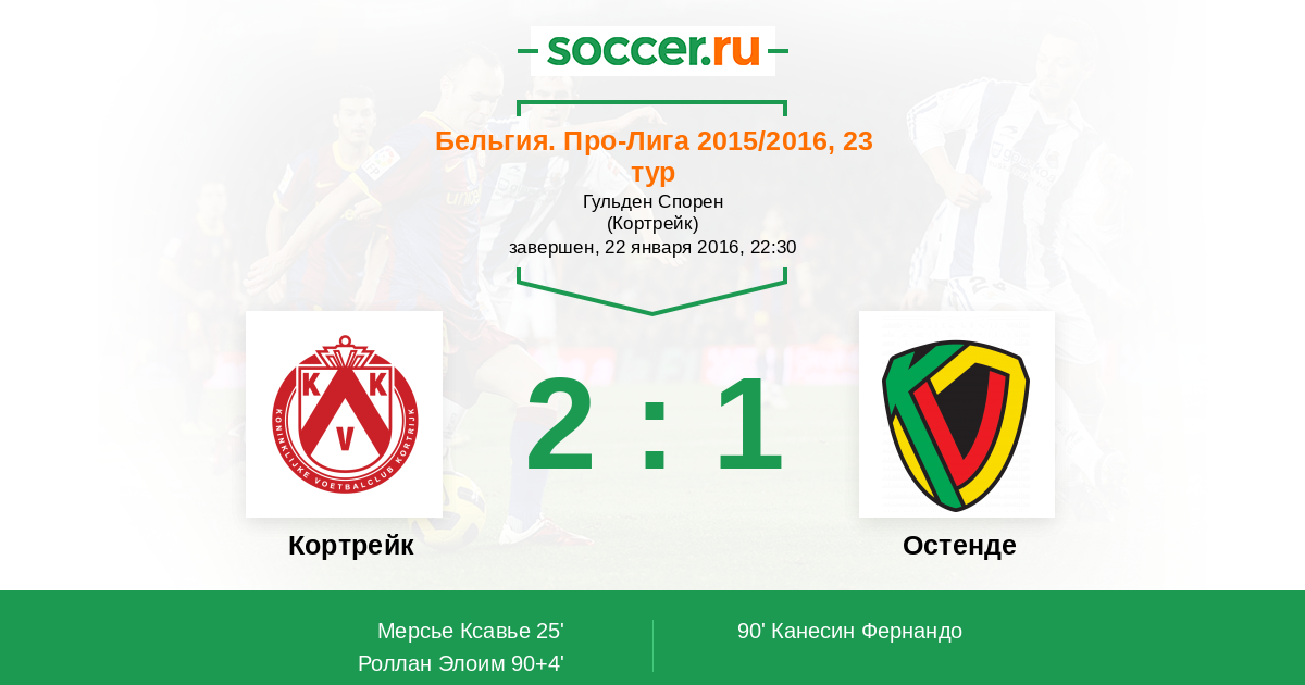 Протокол матча Кортрейк против Остенде