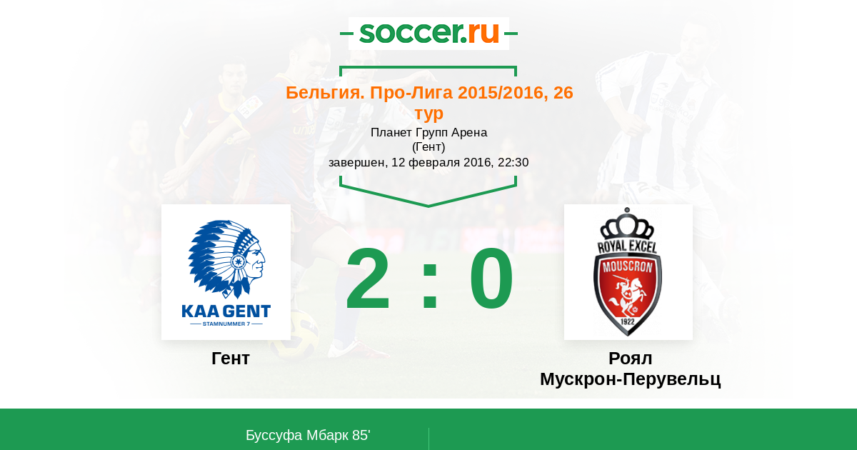 Протокол матча Гент против Роял Мускрон-Перувельц