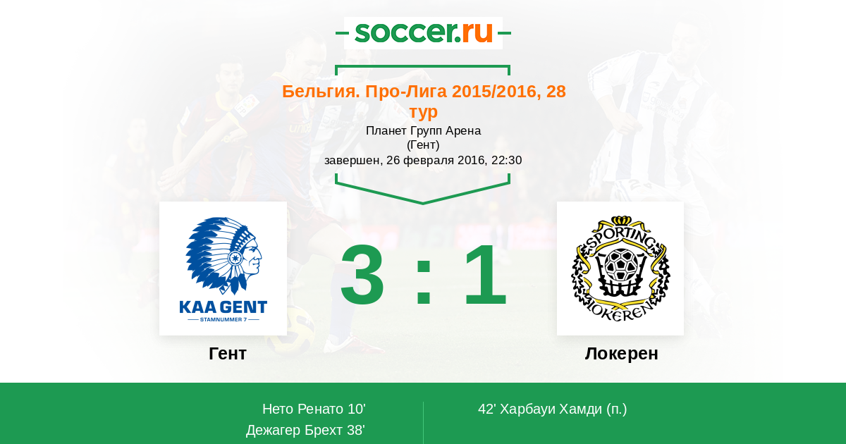 Протокол матча Гент против Локерен