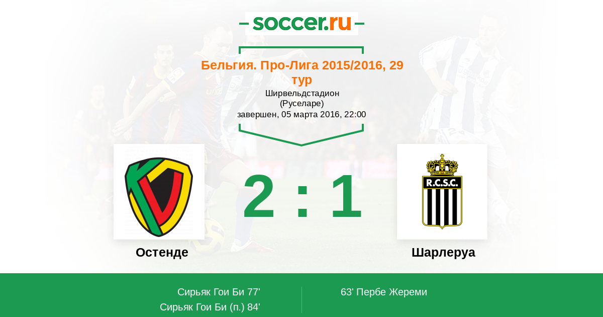 Протокол матча Остенде против Шарлеруа
